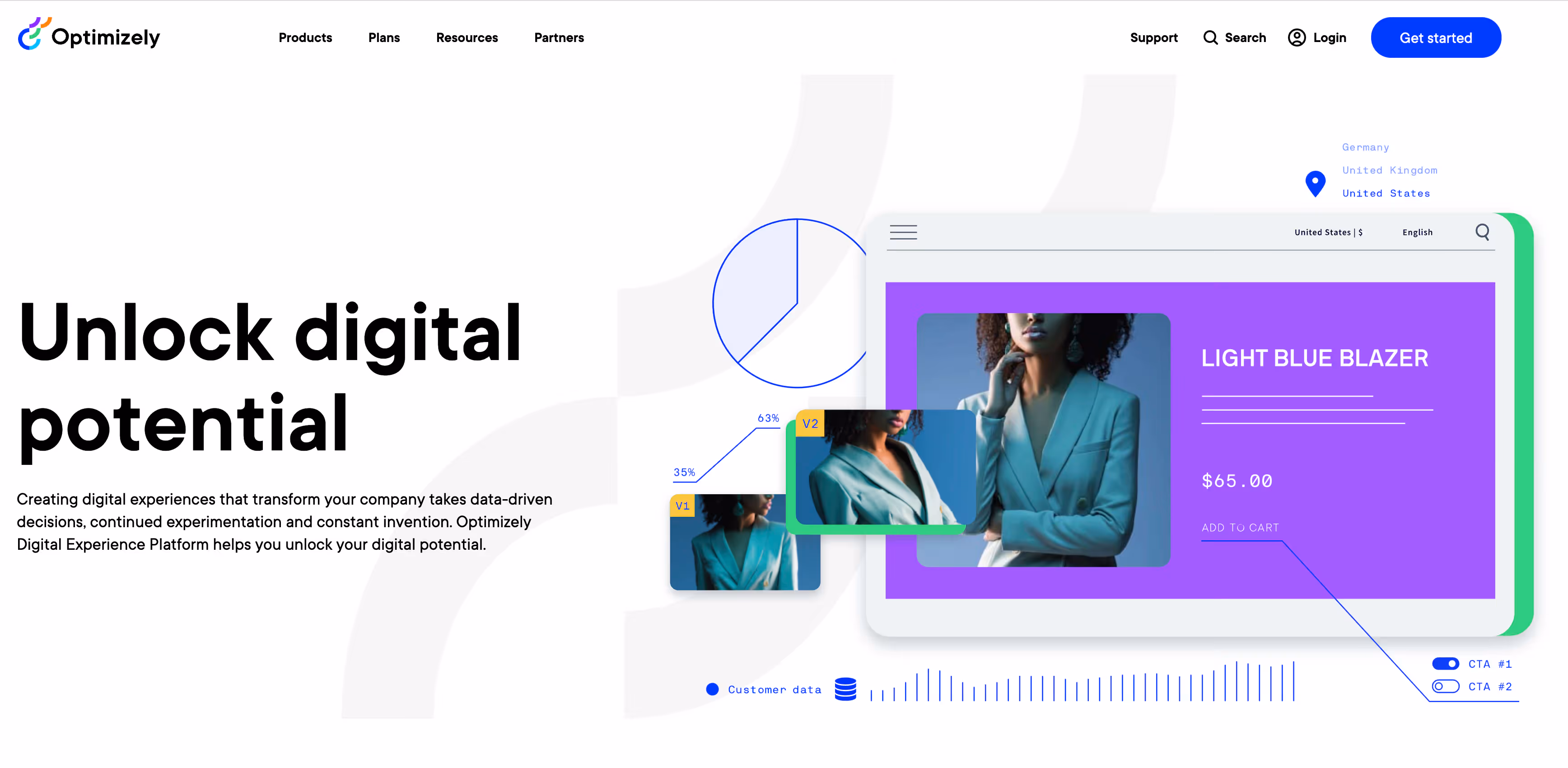 Optimizely is an enterprise-level A/B testing software that offers a variety of solutions for experimentation. It’s used by industry giants like eBay, Visa, Atlassian, IBM, and more.