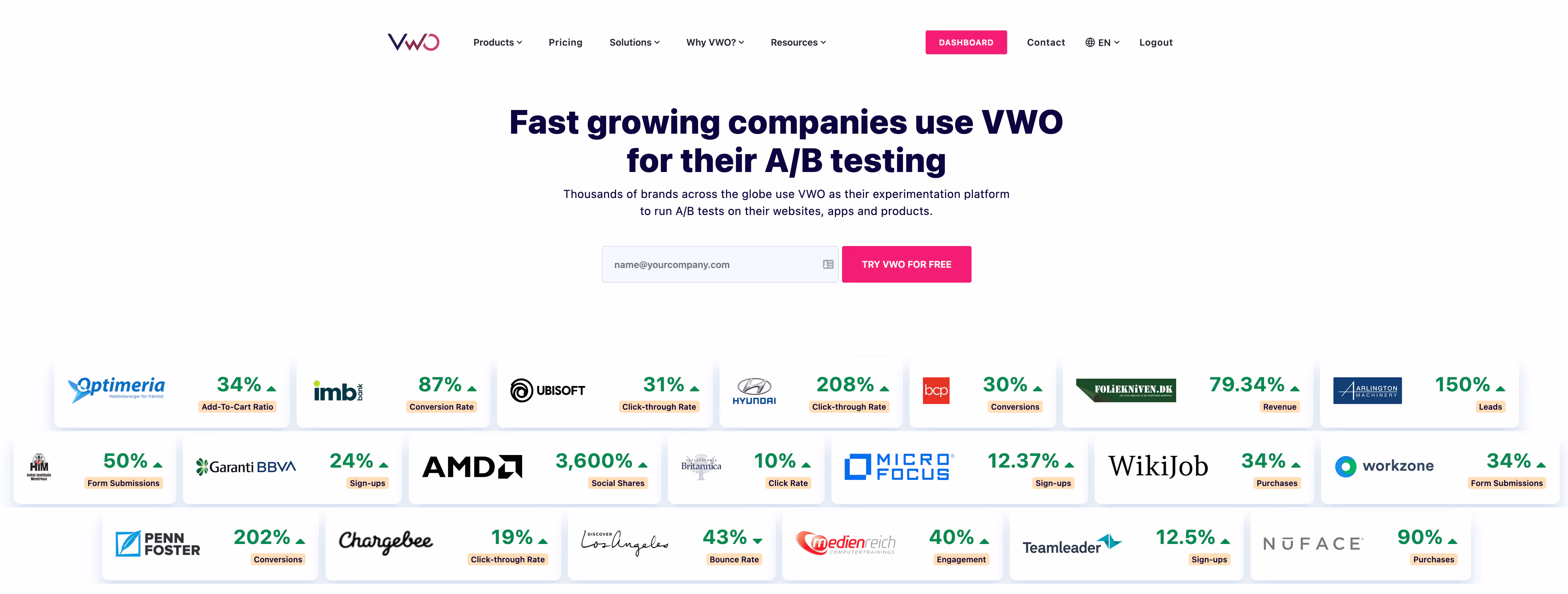VWO is another leading A/B testing software. It allows you to import and aggregate your important metrics to keep track of how everything gets impacted by your tests.