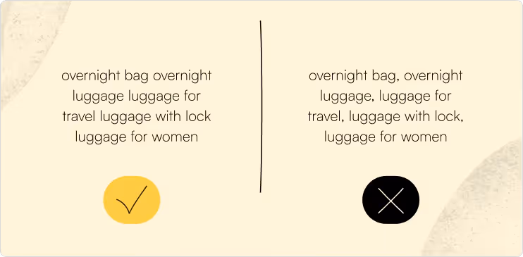 2. Do not reuse the same keywords you have already used in other elements of your product listing. Since you won’t fit every keyword in your listing without ruining the customer experience, you need to make the most out of the space you have. Amazon only needs one use of your keyword somewhere in your listing to index it. Any further use is a waste.