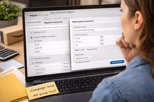 Understanding where to place negative keywords determines your campaign's efficiency and flexibility. Amazon offers two placement options, each serving different strategic purposes.
