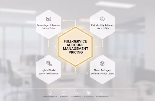 Some sellers benefit from combining internal operational management with external marketing expertise, or vice versa. Full-service account management agencies offer both capabilities under one roof, eliminating coordination challenges between separate partners.