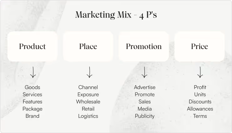 This section of the Marketing Mix covers everything from brand, packaging, features, functionality, design, raw materials, and manufacture.